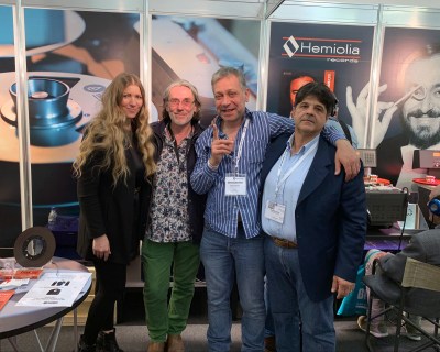 Italian audiophile tape label Hemiolia Records also had a stand at the Show and so I took the opportunity to meet their main man, Claudio Valeri, recording engineer Pietro Benini and Paulina Vogt who handles sales and marketing (and who also happens to be a very talented jewellery maker and sculptor). We had a great conversation about analogue purism. Hemiolia’s recordings are all analogue with a capital ‘ALL’. They’re very clear about that and even have an ‘A4P’ analogue certificate that they issue with all products and hand-sign to confirm their total adherence to analogue processes in all phases of production. You can read more about that on their website here.