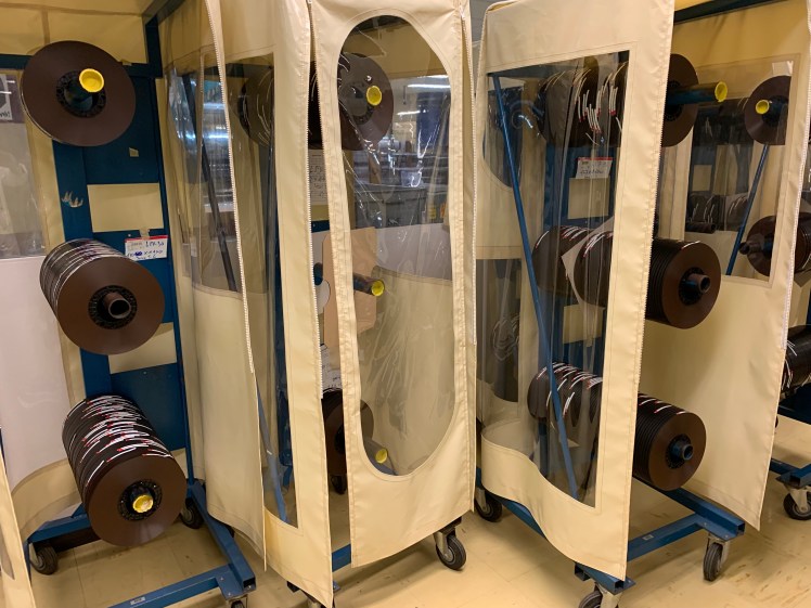 My first discovery: it turns out that Mulann manufactures a far more extensive range of tape than I realized. There’s 1/8” widths for audio cassettes, and then ¼”, ½” 1” and 2” width reel-to-reel tapes for home, studio and professional use. The company also manufactures perforated audio tape for the cinema industry (in 16mm, 17.5mm and 35mm widths), as well as the aforementioned magnetic strips used in the smart card industry. Oh and they also manufacture instrumentation tape used in scientific industries and the military.