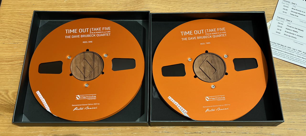 Anyway, fast-forward a couple of decades (during which time Tony very sadly passed away, far before his time around a decade ago) and I’ve since slimmed down my Time Out collection to retain just the original US Columbia 6-eye stereo and the 6-eye mono. So these are now my references against which I judged this new Hemiolia 15ips tape release.